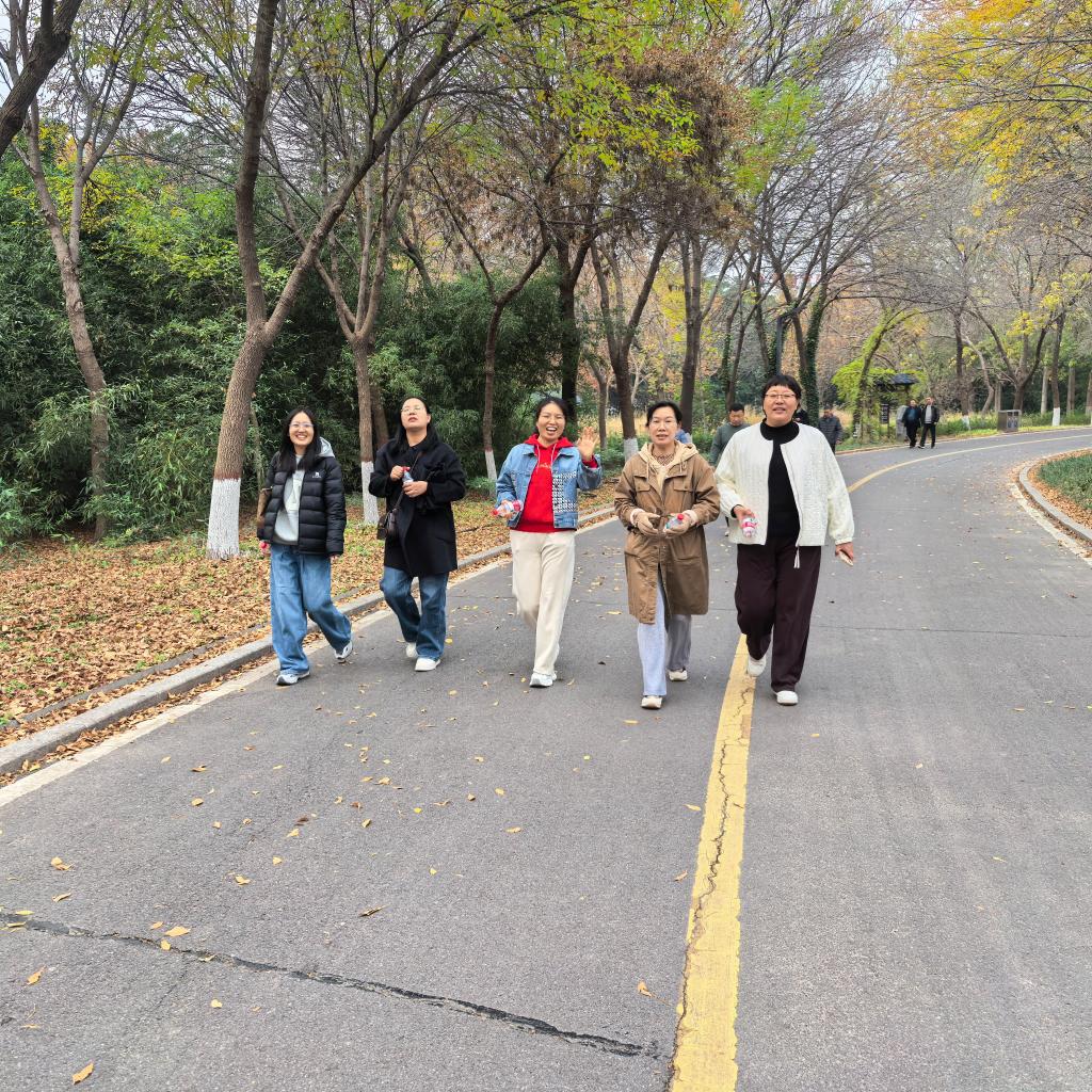 时值深秋,龙源湖公园内层林尽染,景色宜人。活动在轻松愉快的氛围中拉开帷幕。老师们暂时告别了繁忙的科研与教学工作,投身于大自然的怀抱。大家沿着公园步道结伴而行,在健步走的过程中,既锻炼了身体,放松了身心,又欣赏了沿途醉人的秋日美景。园内处处回荡着老师们的欢声笑语,他们时而驻足观赏如火如荼的红叶,时而用镜头记录下这美好的瞬间与彼此灿烂的笑容,定格下一幅幅温馨而充满活力的画面。