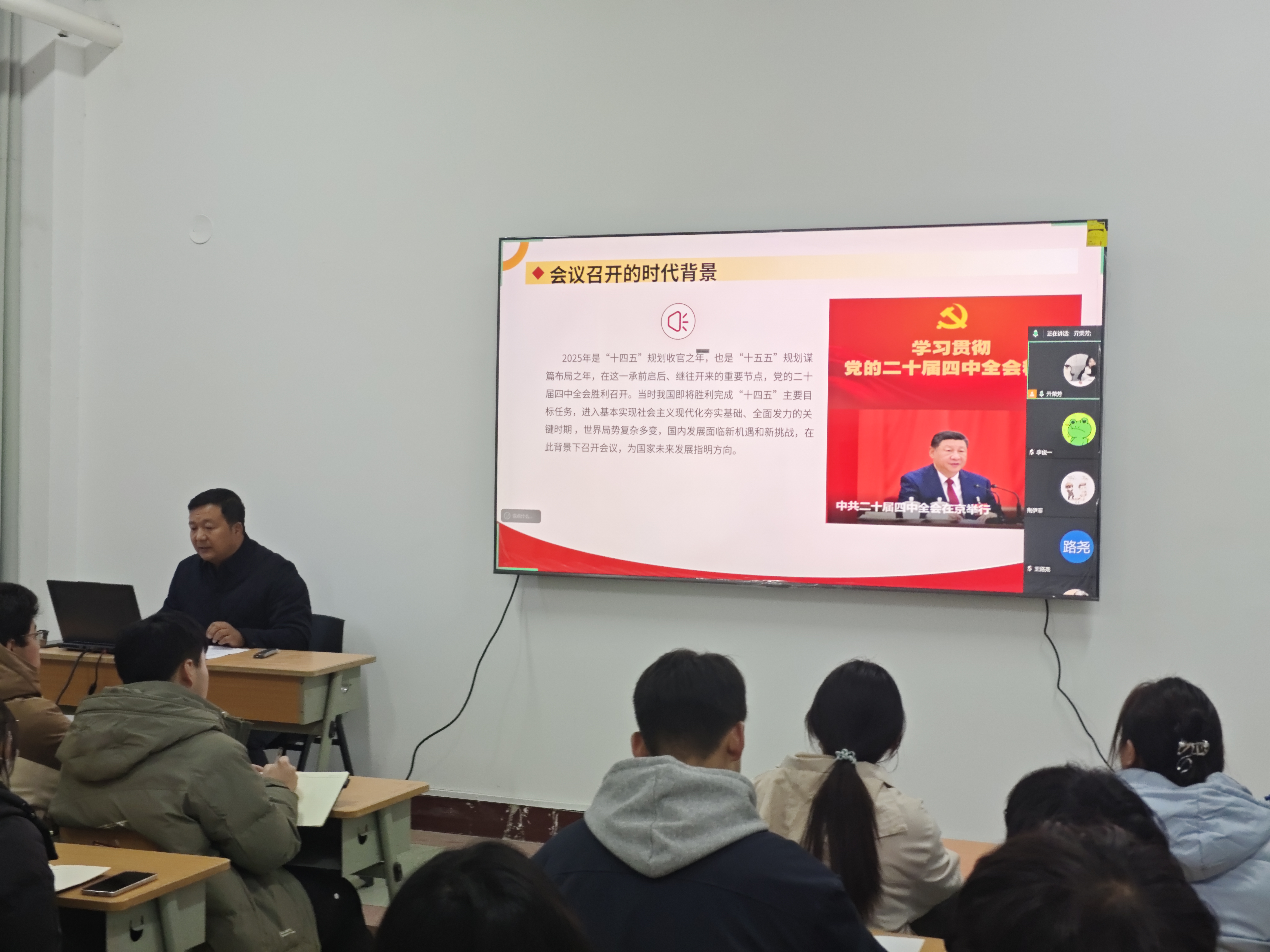 为深入学习贯彻党的二十届四中全会精神,引导青年学子坚定理想信念、强化责任担当,2025125日,焦作大学乐鱼(中国)党总支副书记赵杰文在1号教学楼112党建研习室,以“学习贯彻党的二十届四中全会精神,争做新时代有担当青年”为主题,对学院40名入党积极分子开展专题培训,同时校外实习的13名预备党员也通过线上腾讯会议参加了此次培训。