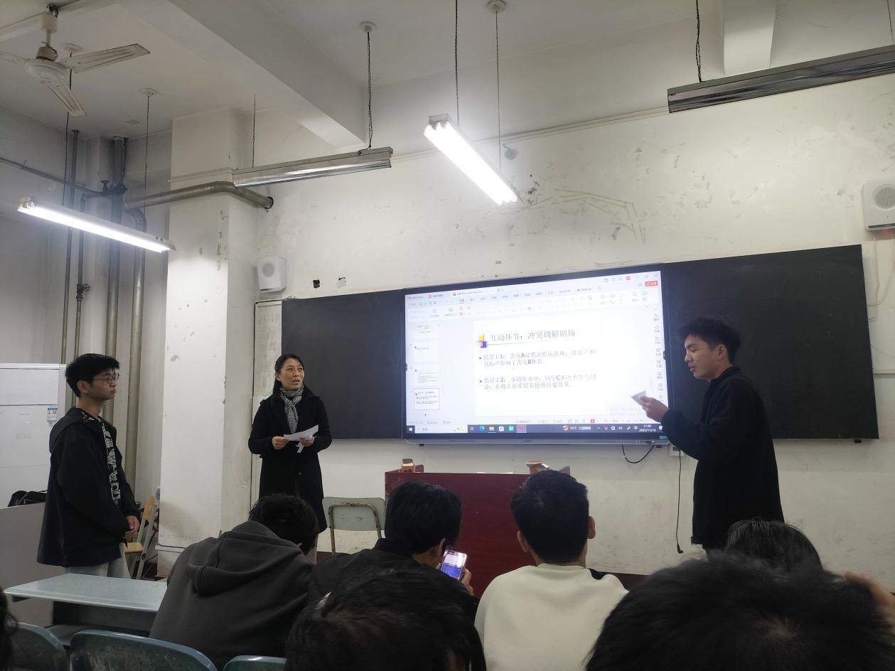 校心理健康教育中心讲师主导分享,围绕学业压力、人际困境等校园常见痛点,结合真实案例拆解情绪异常观察要点、沟通倾听技巧,通过“五步调节法”实操演示与“情绪树洞”互动,既送上可落地的心理调适工具,又搭建起直面困惑的沟通平台。现场学子专注记录,互动氛围鲜活,更在“冲突调解剧场”中深化互助认知。